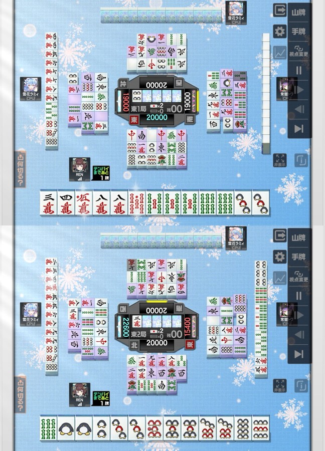 え?え??え???二連続で河底撈魚とかそんな事があるん?しかも二局目はダブル河底撈魚だから、この対局だけで3つの河底撈魚が和了されてるっていう。Σ(・□・;) そんなオカルトありえません。って言いたくなりますねw。(ぉぃ) ちなみに、対面が合計2万放銃した事で丁度0点(トビ)になりこの対局は東二局で終了。(早) あれ?ちょっと待って?自分何もしてないじゃん!(敢えて言うならオリてただけ←) 牌譜の共有! 牌譜ID:LLS4PK
