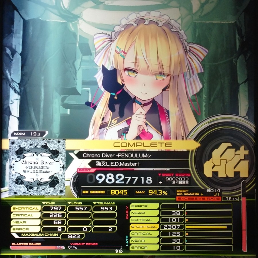Chrono Diver -PENDULUMs- MXM スコアちょい伸び、前半near出て中盤でerror出るって感じ