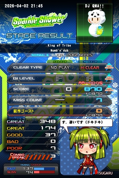 今日の記録載せます タイトーステーション横浜西口五番街店で弐寺やりました ☆6King of Tribe ハードクリアしました