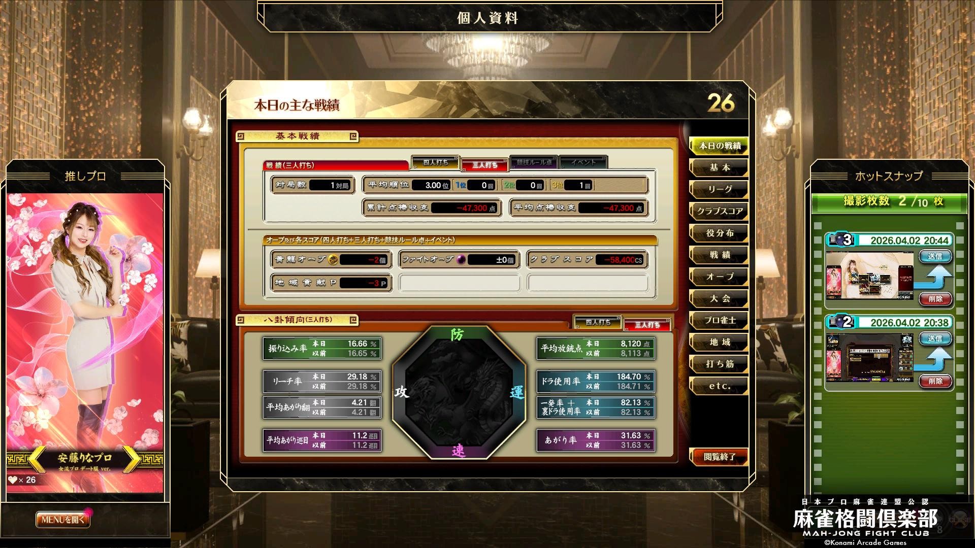 2026年4月2日分 (三麻サバイバルリーグ) の成績です。1局対局して ラスでした😢 (前回から6連敗中です😢) 東風リーグに続いて三麻サバイバルリーグも誠に残念ながら負けてしまいました😢本日3日も仕事終了後参戦予定です!参戦した際は勝てるように頑張ります👍お疲れ様です🙇☺️✨😊🀄☕🍰🧁🥞🥪🍔🍟