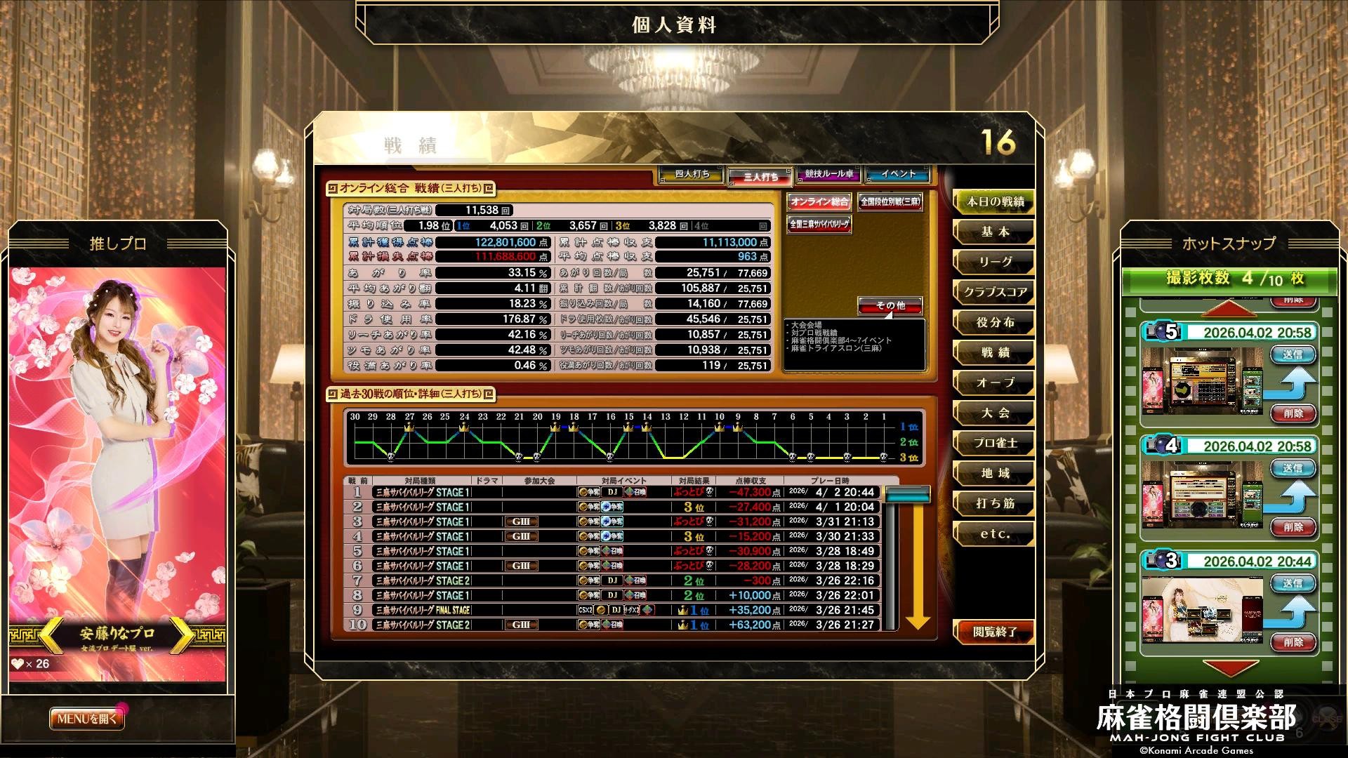 過去30戦成績&詳細10戦成績&オンライン総合&戦績です (三麻) 前回から6連敗中です😢なんとか連敗止めたいですね! 誠に申し訳ございませんが、ホットスナップの都合上により基本情報&八卦指数です (三麻) はございませんので予め承知願います🙇
