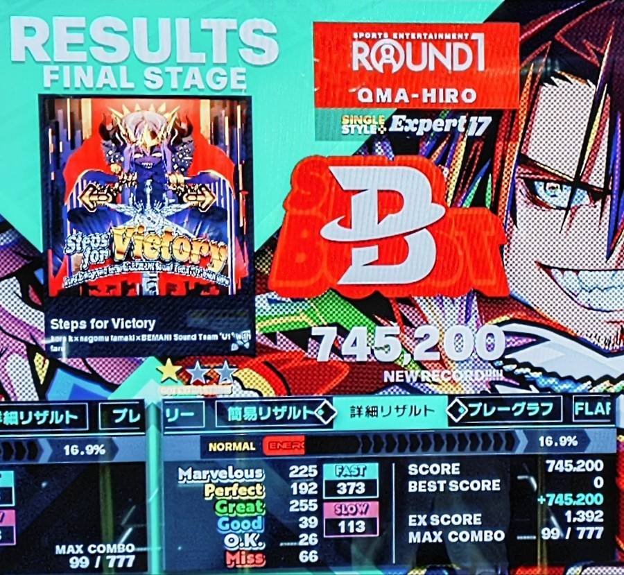 シングル☆17 踏めるところをしっかり踏んで食らいつき、クリアできました。 ☆17、クリアできれば十分です。