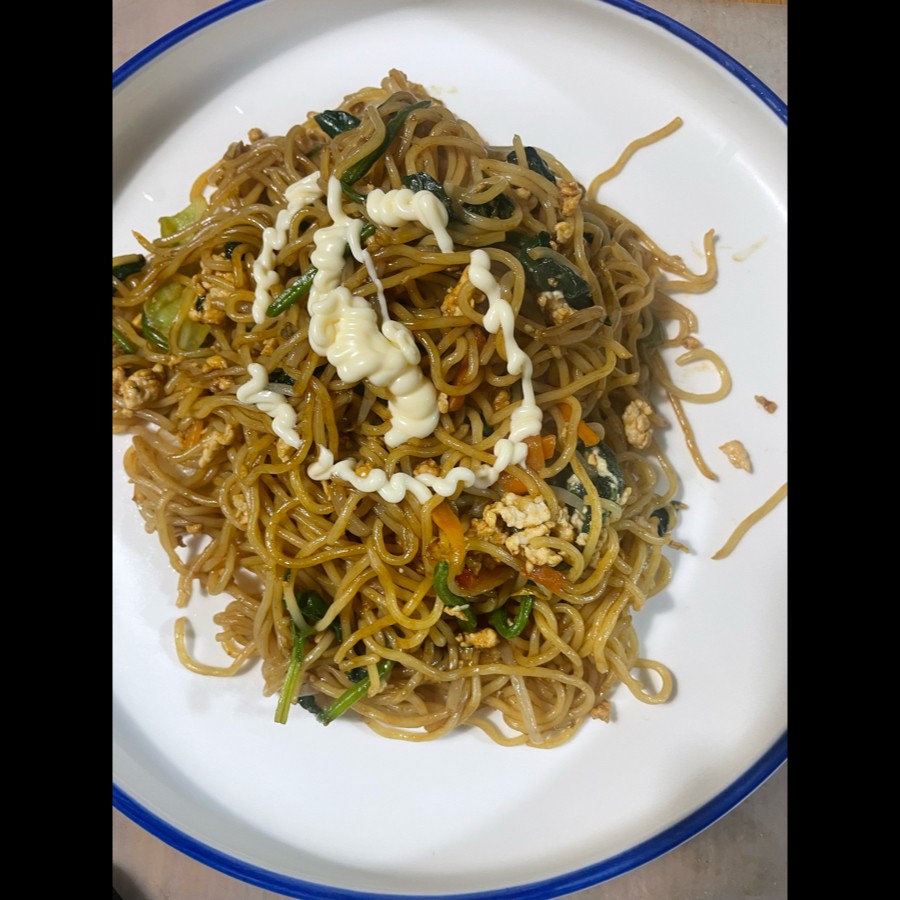 ばんごはひき肉焼きそばちゅるん(*≧∀≦*)
