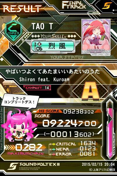 まあ適当に… HSさえ間違えなければ特に何とでもなる部類(^^; しかしホームの電波の悪さとSDVX一台調整中はどうにかならんもんか(´・ω・`)