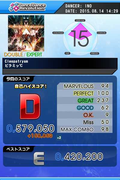 初DP15!ポップンのEXもLv47 2曲目を飾ってるしcleopatrysm大好きww