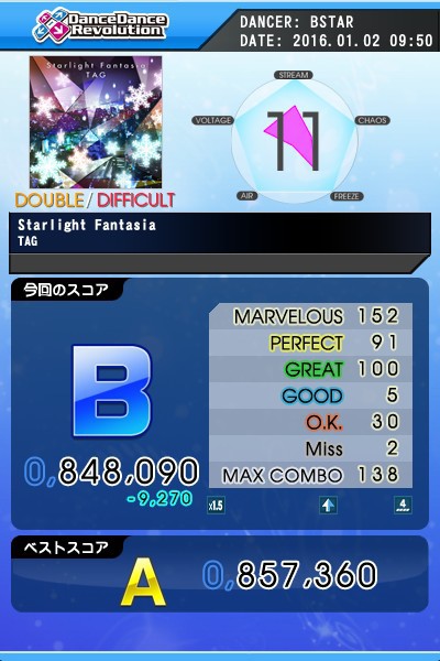DDPランダム Extra stage なんとかクリアですけど、スコア下がってますね(^_^;) 中盤の8分が注意ポイントかな?