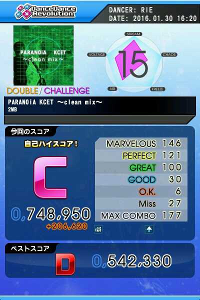カットで解禁だけして、通常譜面でやったら 久しぶりにLv15クリアできたo(`^´*)