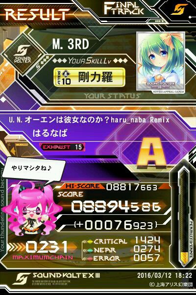 ついさっきまで粘着してたのもあって 譜面が頭に入ってて凄い冷静に出来た♪ ということで……