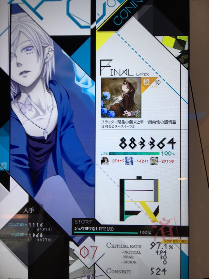 フラッター黄コネクトオール! やっぱいい曲ですね〜( ´ ▽ ` )ノ グラフィカはストーリー指定のやつでやったからスコアは低いけど(汗)