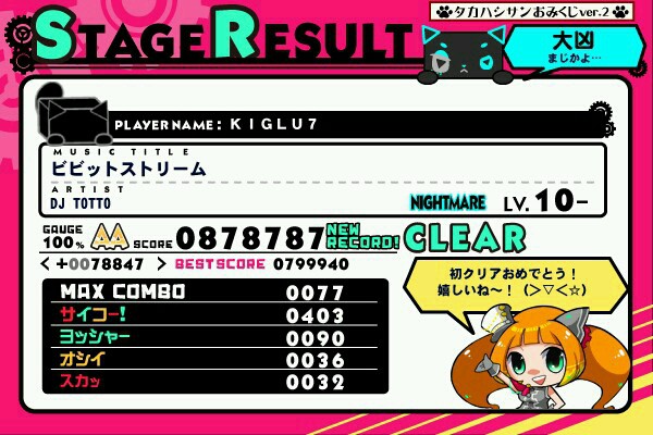 ビビットストリーム(NIGHTMARE) 前作で解放してその時やったんだけどもクリア出来なかったまんま放置してたのをやったらクリアしてスコア大幅更新したよ!その2