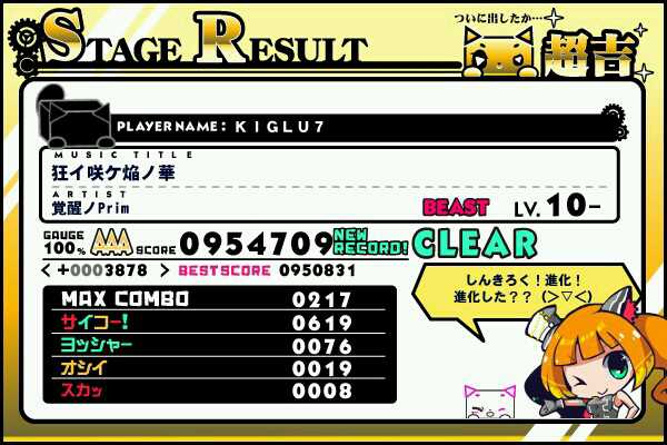 のちにまたスコア更新したの図 ちなみにこのスコアを出した時にゲージが満タンになりようやくエボアボ悪夢譜面解禁させた 道のり長し…