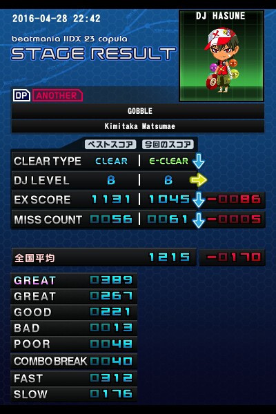 RNMさんからのお題、GOBBLE(DPA)正規。 こういう、いわゆる「最近の譜面」「DPを考慮した譜面」ってやつがすっげぇ苦手です。 だからと言って灰譜面なんかできるわけないですが。