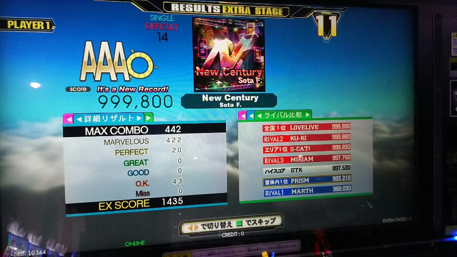 よっしゃいった!と思ったら、真のライバルとPERFECT 8個差(・・;)