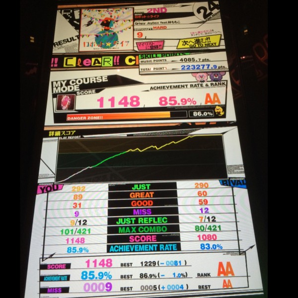 2曲目はロボットライフ! 精度はともかくだいぶミス抑えたおかげか、あまりダメージくらわずに済みました(^^;;