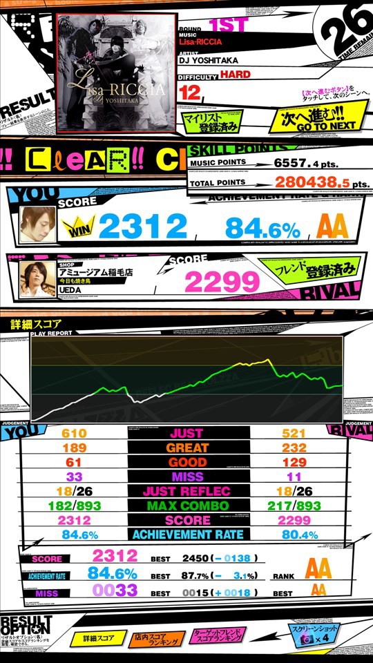 SOUNDTEAさんが無事に帰国されたので、「おかえLisa-RICCIA連奏会」始めます! 早速1回目、うえださんとマッチングしましたヾ(⌒(ノ'ω')ノ 絶対1回はマチると思ってましたが、早すぎないですか(笑) ありがとうございました♪ おかえLisa-RICCIAヾ(⌒(ノ'ω')ノ