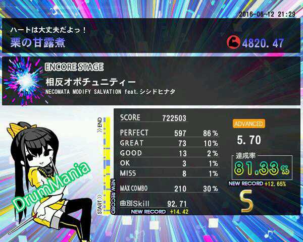 『相反オポチュニティー』がB→Sに♪まだミスが多いけど、上達を感じた♪