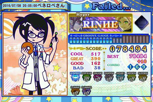 リンネH アズサさんがクリアしたということで、久しぶりに挑戦してみましたが、ここまでゲージが残るとは思ってなくてビックリです…(;゚д゚) サビ終了後で赤ゲージだったのでいけそうな気がしたんですが、地力不足ですね。 でも手応えは感じたので、ポップンのモチベ向上に繋がりました!! 今月中にはクリアしたいですね。