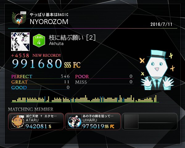 それから、いつもQMAキャラ誕生日の大会を開催する人が、また「オレナンカドーセ」という大会名で、今回のAkhutaキューブで解禁できる3曲の緑譜面大会を開催していたので、いつものように「緑譜面をプレイすることは『オレなんかどうせ』ではなく素晴らしいことなのだ」と伝えるために即座に参加しました。 まず1曲目はこの曲・・少しだけ自己ベスト更新です。