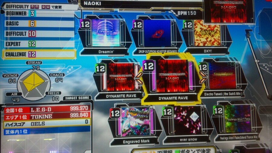 なんでdynamite raveあるんだよwバグかよw と思ってた自分がバグってたっていうおち( ´,_ゝ`) Levelソートで激と鬼は足12だから並んで表示されてただけだったっていう