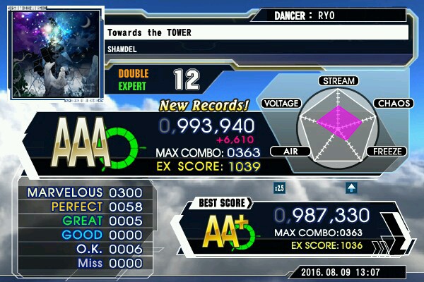 「Towards the TOWER」DP(激12)、ランクAAA到達。特徴的なメロディに惹かれ、すっかり虜になったなぁ……