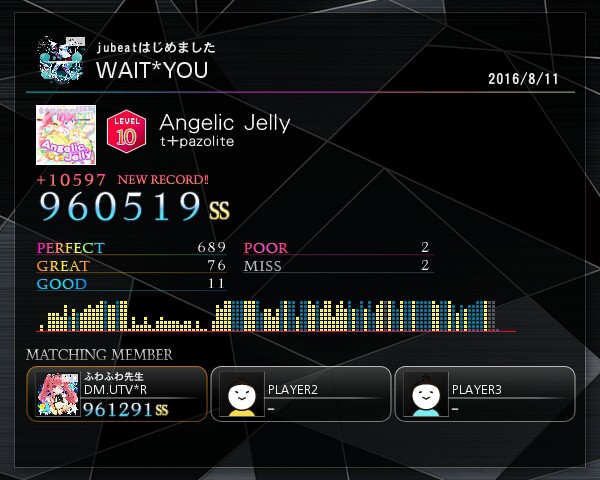 これ乱打キツい0(:3 )〜 _('、3」 ∠ )_ ↓ 日を改めてSS乗せ再チャレンジ٩( 'ω' )و ↓ 腕動くかなぁ(´・ω・`) ↓ 裏ライバル出現\\\└('ω')」/// ↓ 一気に960k乗った.。゚+.(・∀・)゚+.゚ というわけでふらうさんマッチングありがとうございました(`・ω・´)キリッ