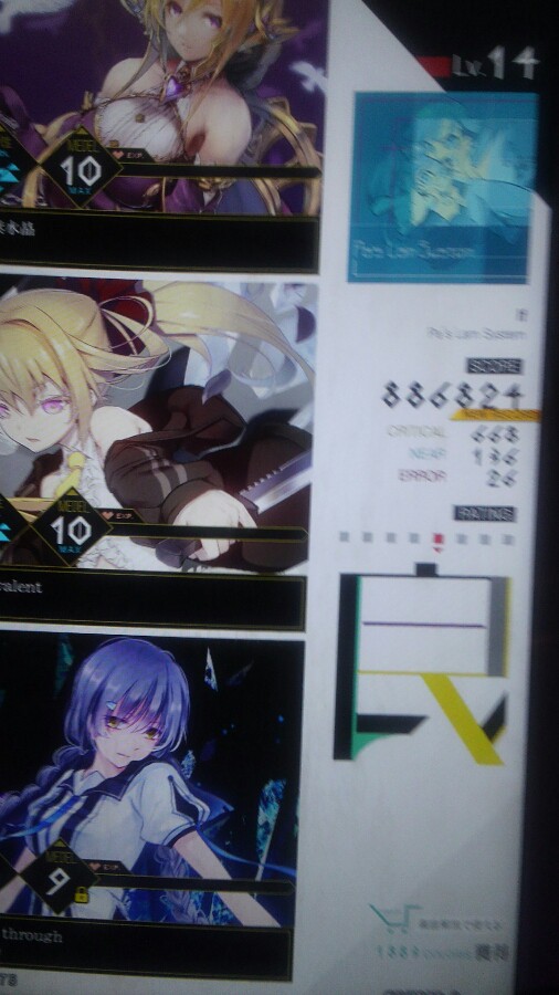 if(朱) ラインの上級ミッションのリザルト(結果は99%) 下のグラフィカの上級ミッション攻略を先にした方が良いかもしれないですね…(なお、naturalは全く育ててない模様)