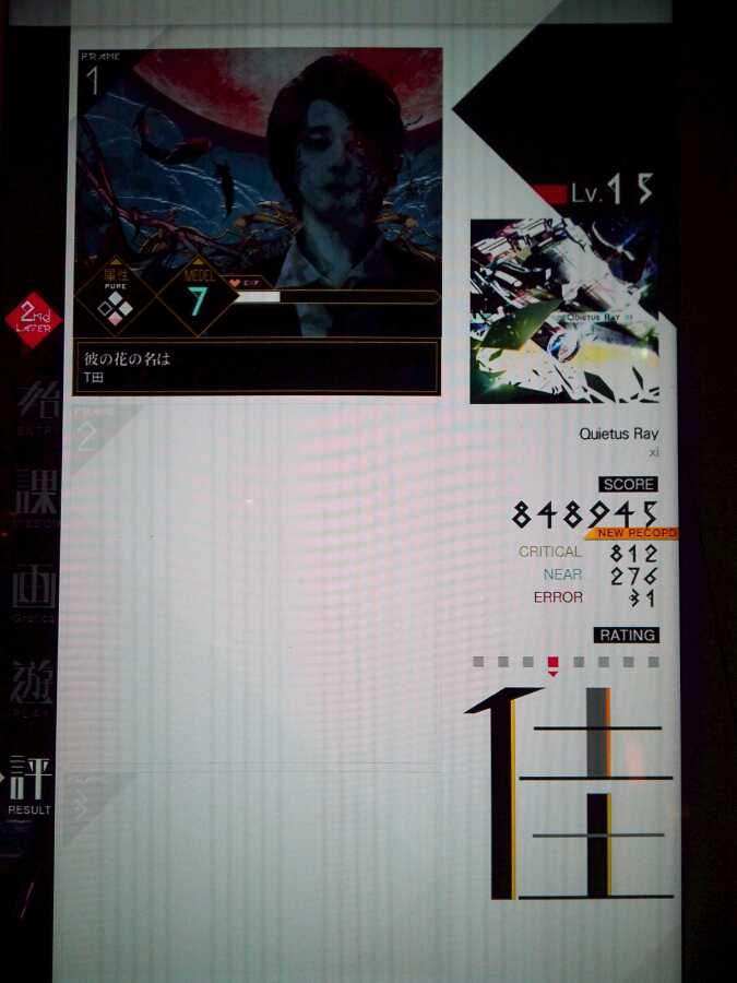 クワイタス(朱)初見 それほど難解な配置はないから初見にしてはエラーが少なかったけど、ニアがやばい まだまだ全然削れるとは思うけど、はてさてどこまで伸びるやら 今日は終わり。明日は一応本業ということになってるDDRを一週間ぶりくらいにやりに行きます…たぶん