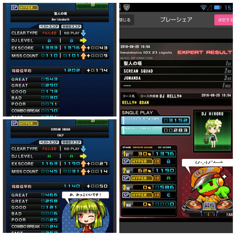 レリィさんのコース・SPH。 先日間違えてSPNをやったけど、今日はちゃんと間違えなかったですw JOMANDAの高速から低速に戻るところで死亡しましたヾ(´〜`)ゞ 1・2曲目はちょっと更新です(^_^;) 2曲目のBPが31に減ったので、この後単品で赤いゲージでやったら、残り30ノーツくらいで閉店しましたorz