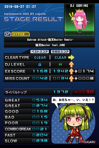 Bahram Attackねこまてぃリミの灰、A 最近スコア伸びなかったけど判定ずらしたら自己べの嵐