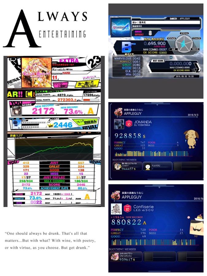 最近のロカマチ編、ケース1。 アルス、レイニー、ちゃぴすんのトライアングルゴリラに囲まれたの図。。。 リフレク、ユビート、DDR、ビースト(+洗濯機)と多種にわたってやるもかわりがりを受けましたw まあ、その中でも自己べ出たのは力引き出してくれたからだよなぁ〜
