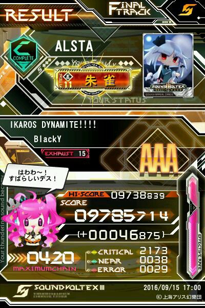 イカロス鳥(´∇`)一番の収穫かな お前の地力を確かめてやると言わんばかりの譜面、めっちゃ楽しい( ´_ゝ`)
